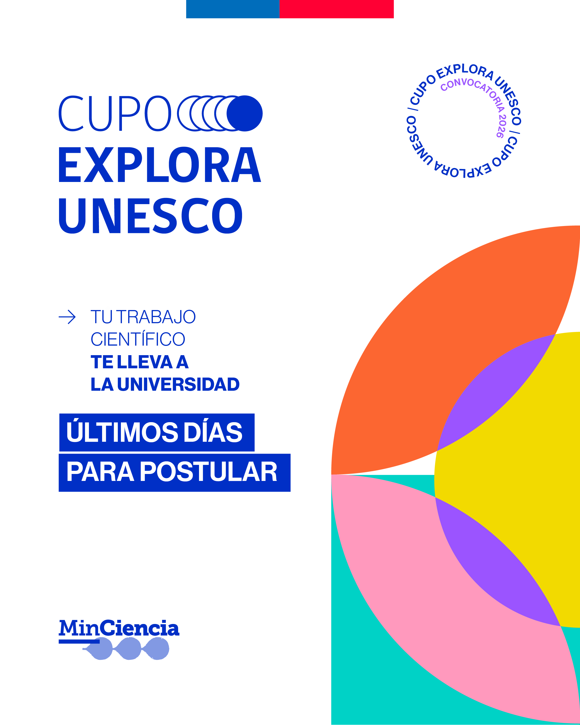 “El Cupo Explora Unesco es mucho más que una vía de ingreso. Es el reconocimiento a trayectorias científicas que comenzaron en las escuelas, liceos y colegios. Es un reconocimiento a jóvenes que descubrieron en la ciencia una forma de entender y transformar su entorno”, destaca el ministro de Ciencia, Tecnología, Conocimiento e Innovación, Aldo Valle. “Queremos que cada vez más estudiantes sepan que su curiosidad y esfuerzo pueden abrirles las puertas de la universidad”.